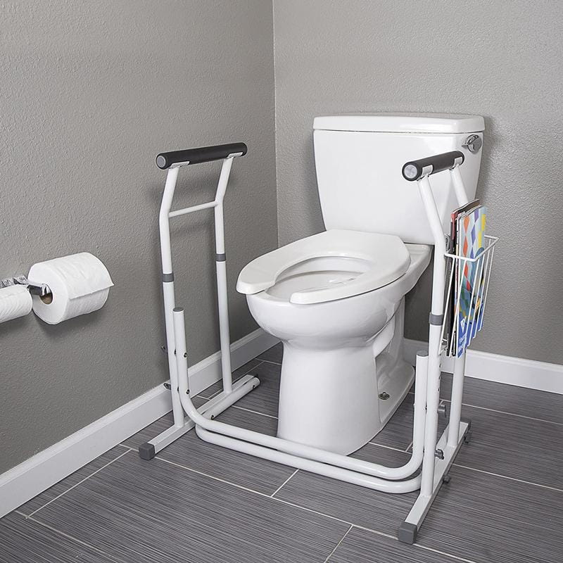 - SITTING & RISING AID – This free-standing bathroom safety frame provides a stable support for users to sit or rise from a commode. Ideal for seniors, handicapped or those with arthritis and/or those recovering from injury/surgery. This safety rail prevents accidental slips or falls, common in the bathroom.