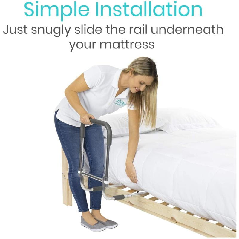 - COMPACT BEDSIDE SUPPORT: Providing stabilizing support, the Vive compact bed rail is perfect for seniors, those recovering from hip replacement surgery, or suffering from back pain or other injuries. The compact bedrail allows individuals to independently sit and stand up with greater ease, minimizing the risk of falls and reinjury.