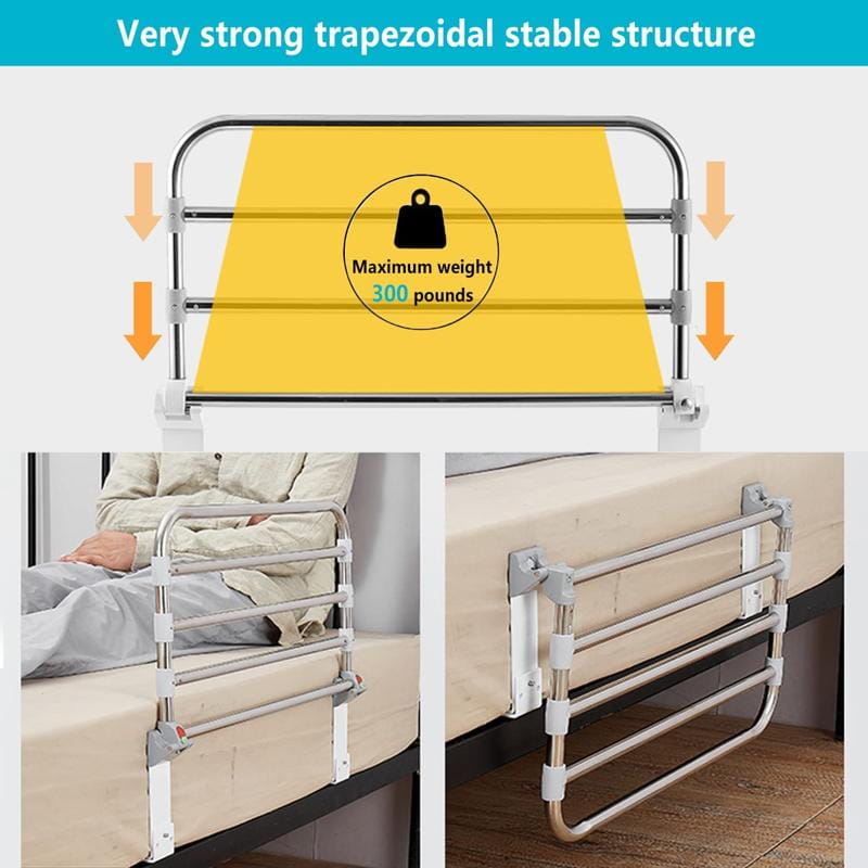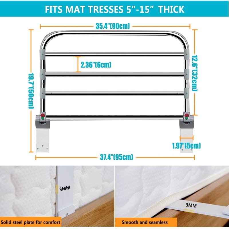- Adjustbal Non-Slip Rail: the height of the bed circumference Can be adjusted according to the thickness of the mattress.The support bar can be easily folded when not in use or when making the bed. Simply release the 2 round knobs from the locked position to fold the slide rail.